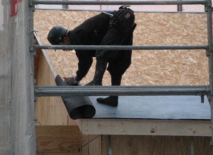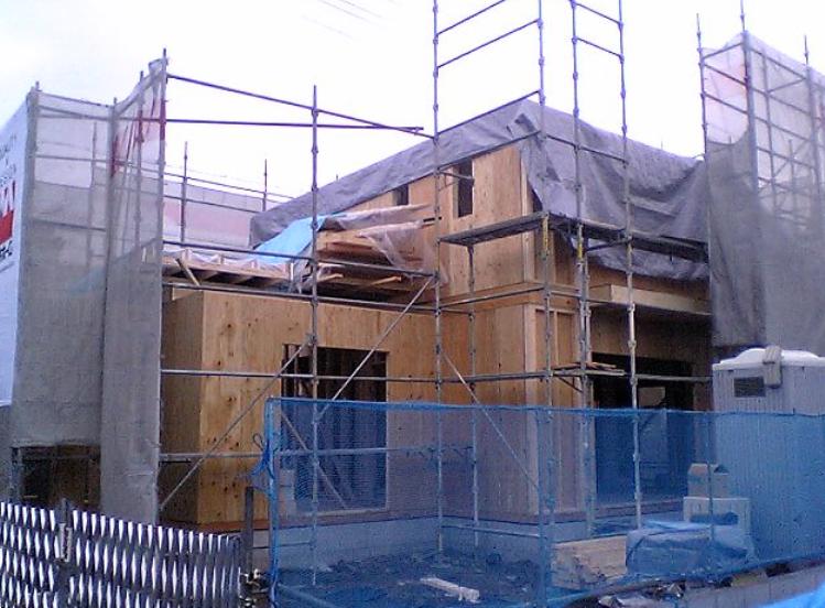 今日は屋根のルーフィング(防水シート)貼りでした。